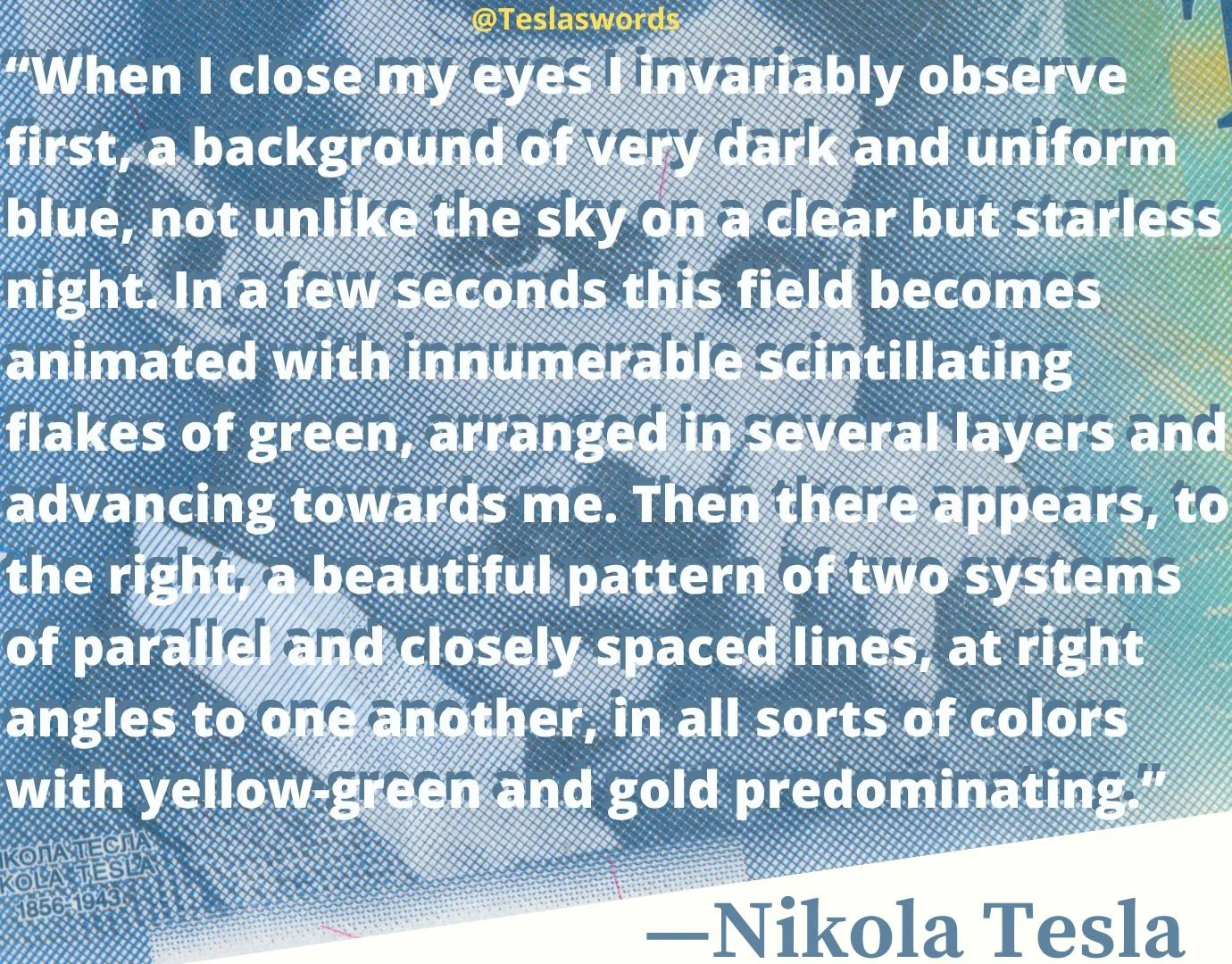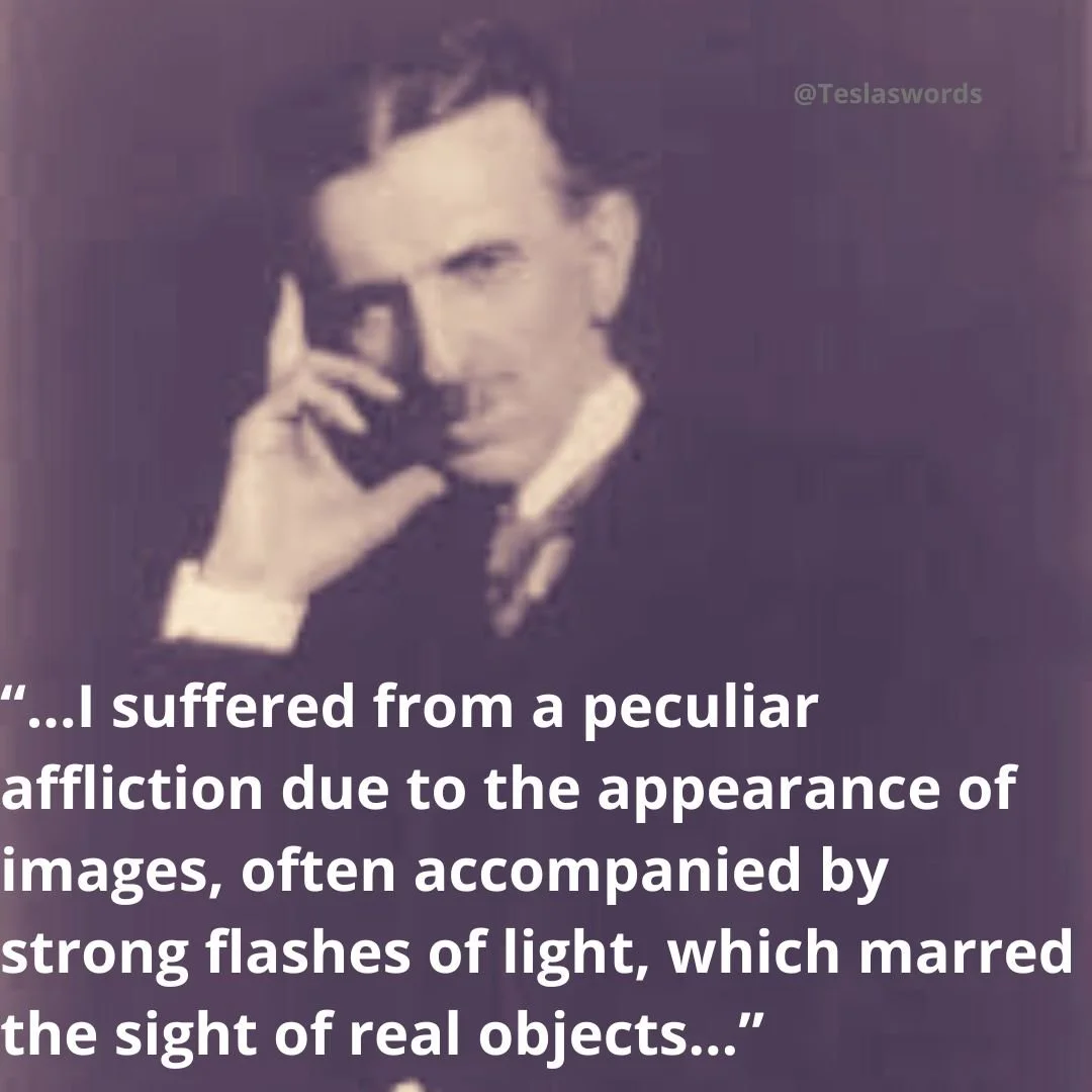 “It is often said that Tesla had a photographic memory, and he could ‘see things in his mind’ but there are many of his quotes I can use to show he was also seeing things ‘outside’ his mind. In other words, hallucinations. He has this quote saying he would wave his arm and watch his hand go right through a hallucinated object he was seeing.